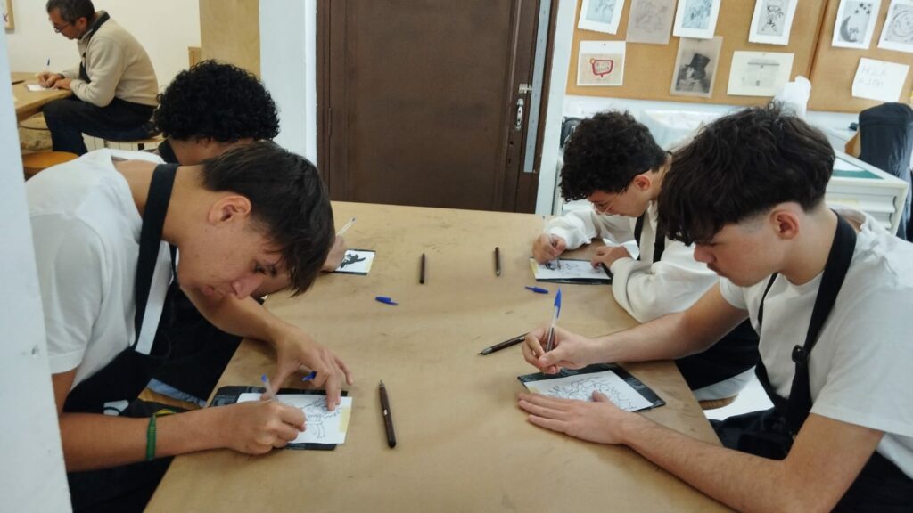 Les élèves ont pu admirer les gravures originales des célèbres Caprices et participer à un atelier artistique où ils ont créé leur propre œuvre en utilisant la technique même de Goya.